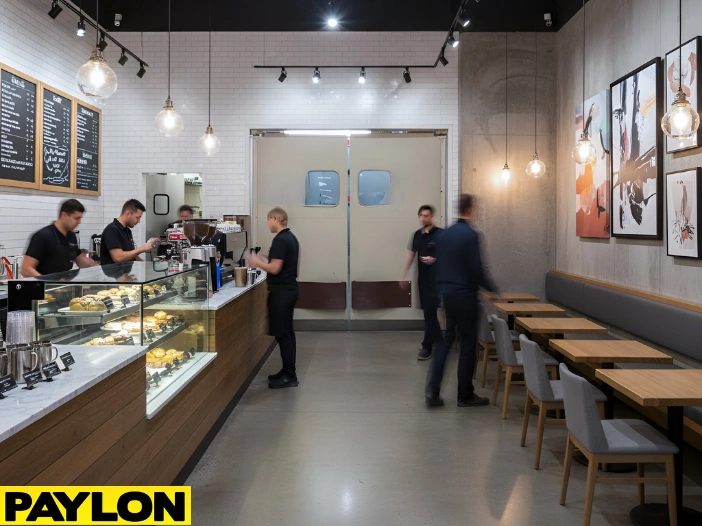 Even during rush hours, these doors help maintain smooth movement throughout the café. By controlling traffic between staff and customers, they improve safety, reduce collisions, and keep the space inviting and efficient.
