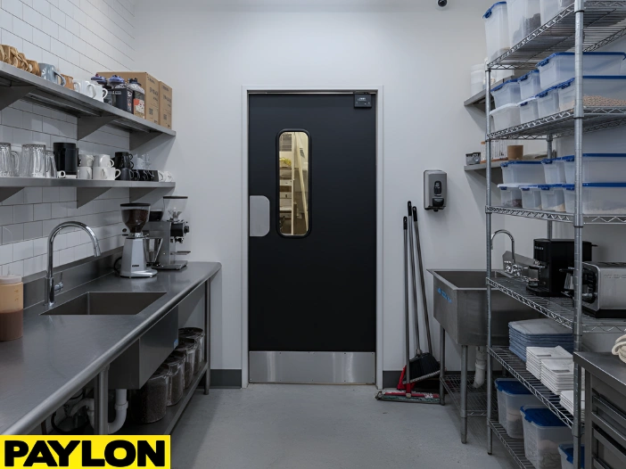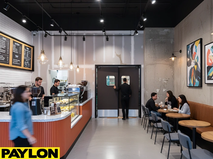 The PE-720 ABS-core swinging door is perfect for busier cafés. It handles frequent tray and cart movement while keeping backrooms discreet. You can request a quote for the PE-720 to improve efficiency during peak hours.