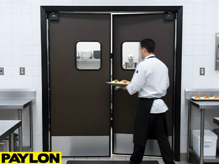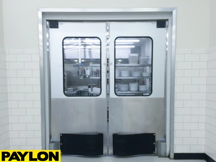 Commercial swinging doors make movement fast and effortless. Their two-way, hands-free design lets employees carry trays, boxes, or supplies without slowing down.