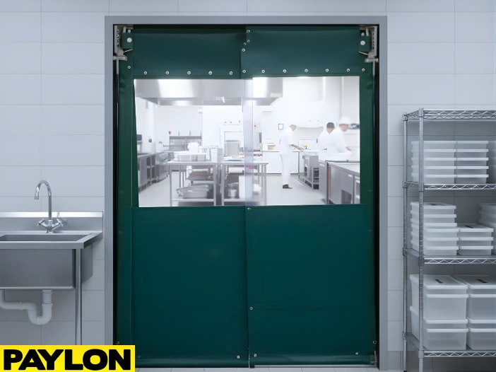 | PE-120 | Light to medium traffic areas | Flexible PVC, 0.120″ thick | ABS stiffener strips, clear vision panel, economical build | Stockrooms, retail areas, restaurant kitchens |