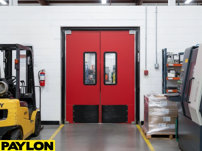 Industrial swinging doors are built to meet the demands of nonstop factory activity. Their reinforced cores and heavy-duty panels absorb repeated impacts from carts and forklifts without bending or cracking.