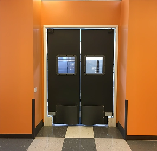 - The door body is constructed of 1-1/2" thick urethane foam core with a high strength structural PVC frame. Includes USDA accepted full perimeter door seal