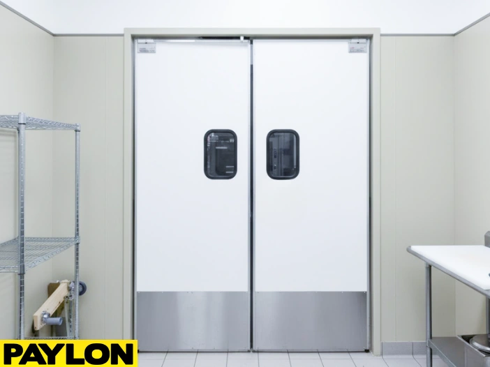 Doors like the PE-630HPL with insulated cores and full-perimeter seals maintain temperature zones, helping reduce energy use in hot and cold kitchen areas.