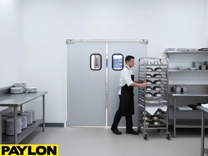When doors absorb moisture, grease, or food particles, they become harder to clean and may harbor bacteria. This makes it difficult to meet sanitation standards. One-way door designs also limit movement, slowing staff during peak hours and disrupting the smooth flow between prep, service, and dishwashing areas.