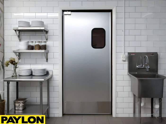 Stainless steel doors are built for heavy traffic, easy cleaning, and durability. They keep kitchens hygienic and help staff move efficiently, making models like the PE-625HPL ideal for high-use commercial spaces.
