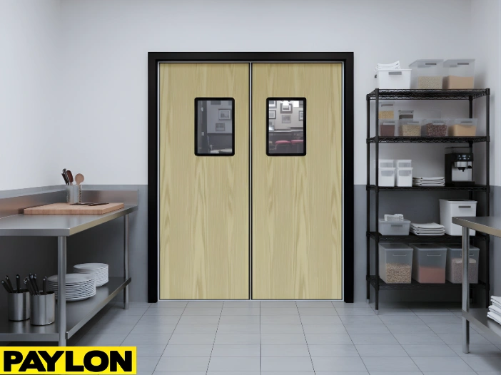 Double-swing hinges allow staff to move freely from both sides without slowing down operations. The PE-625HPL is especially effective for back-of-house corridors.
