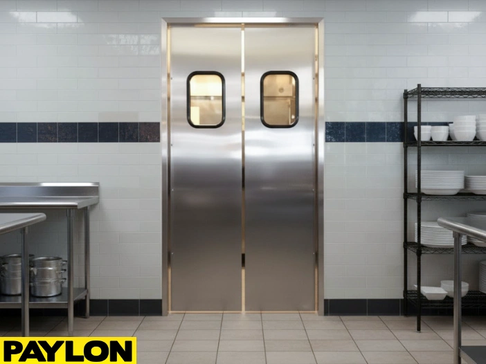 Stainless steel kitchen doors like the PE 510 SS stainless steel swinging door offer strong hygiene, durability, and style. They suit nonstop restaurant service and handle frequent cart and foot traffic.