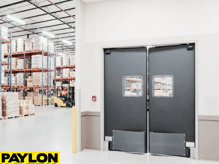 Yes. Models like the PE-720 swinging door include insulated cores and tight seals that limit airflow between rooms. This helps maintain temperature control in restaurants, grocery stores, and warehouses, lowering overall energy costs.